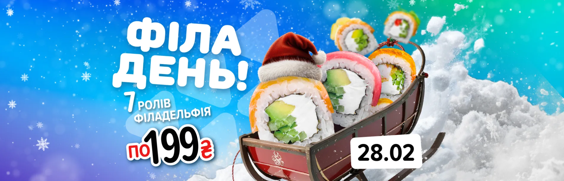 7 ролів Філадельфія лише по 199 грн. В закладах, на замовлення та самовиніс. Але, не сумується з іншими акціями, бо і так супер-вигідно🤑