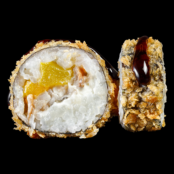 Рис, норі, вугор, манго, сир філадельфія, соус унагі, ,рол смажений в сухарях панко