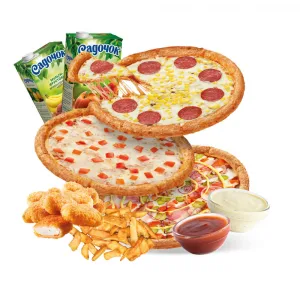- Піца та різноманітні закуски — картопля фрі, нагетси.