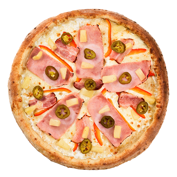 Вершки, сир моцарела, котто. ананас, халапеньо, перець болгарський, бекон
