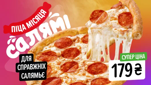 Піца місяця – Салямі 179 грн🍕 Знайомий смак та правильний баланс. Піца, яку замовляють, коли не хочеться експериментів.