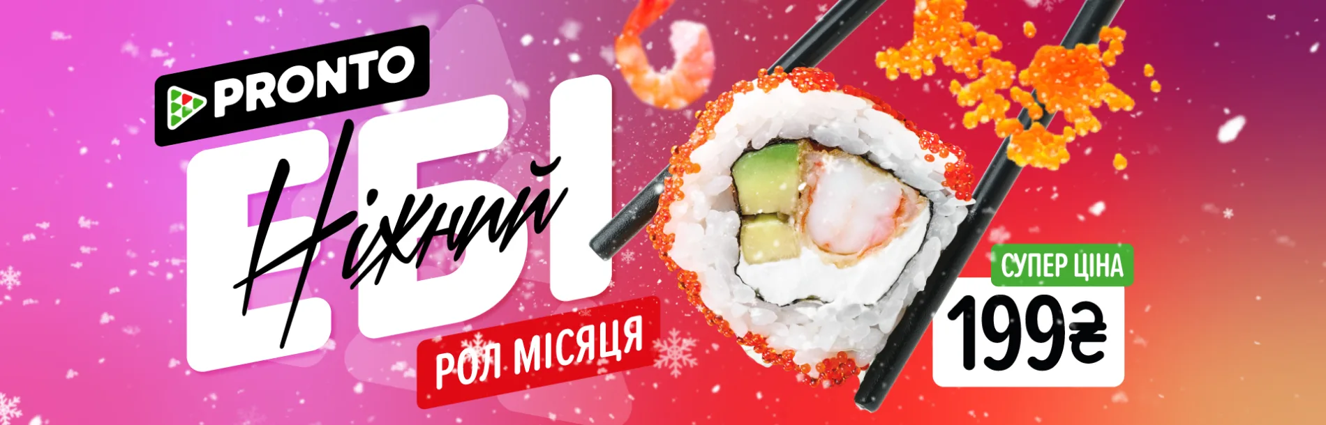 Ніжний Ебі – це креветочка, засмажена в темпурі за компанію з авокадо в обіймах ніжної філадельфії ☺️ А навколо кожного сушика яскраві пружні ікринки піднімають настрій і додають свою смачну нотку. Це рол місяця, вартістю 199 грн 🍣