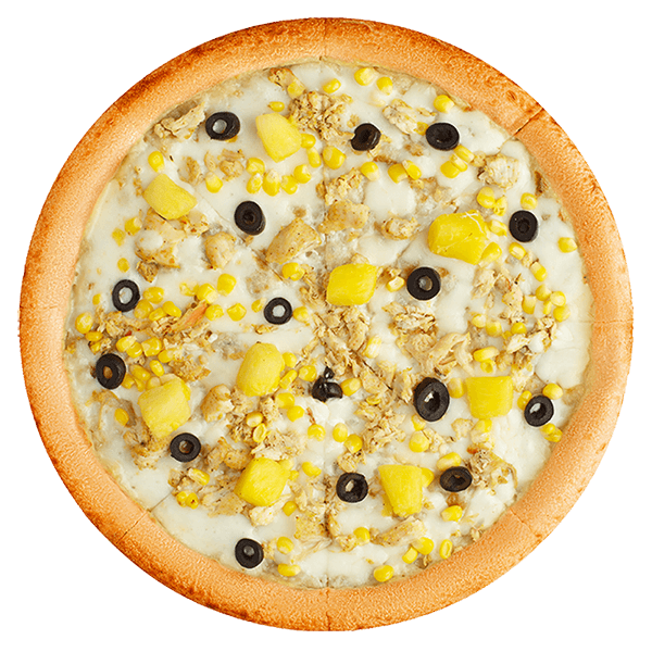 Соус вершковий, сир моцарела, курка, ананас, кукурудза, маслини