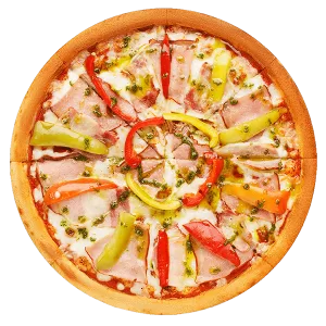 Base, tomato sauce, mozzarella cheese, salami, chicken, ham, bacon, tomatoes