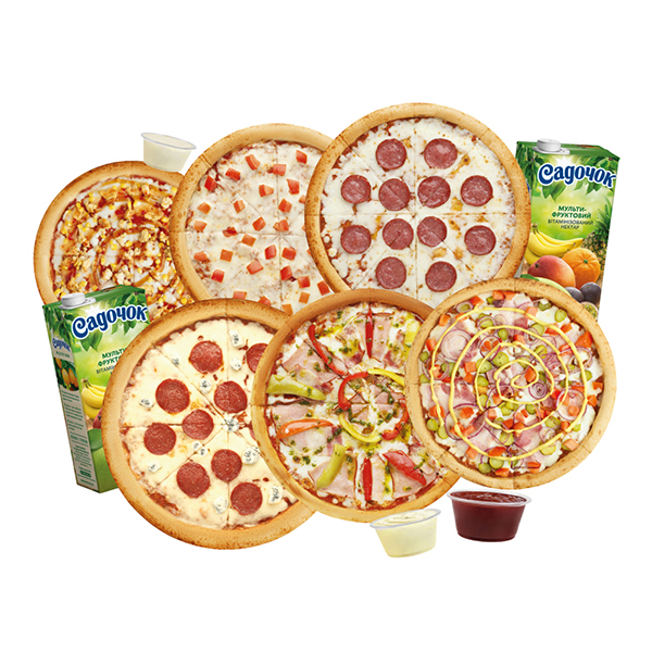 - Піца та різноманітні закуски — картопля фрі, нагетси.