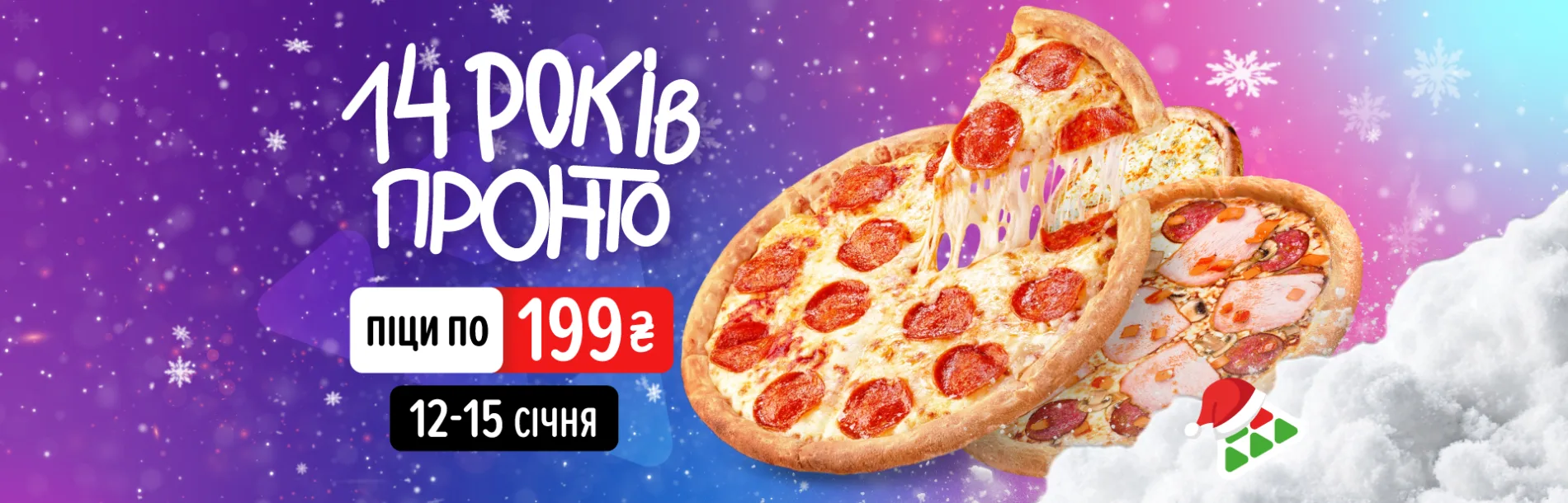 З 12 до 15 січня включно в усій мережі PRONTO піци будуть по 199 грн🎉