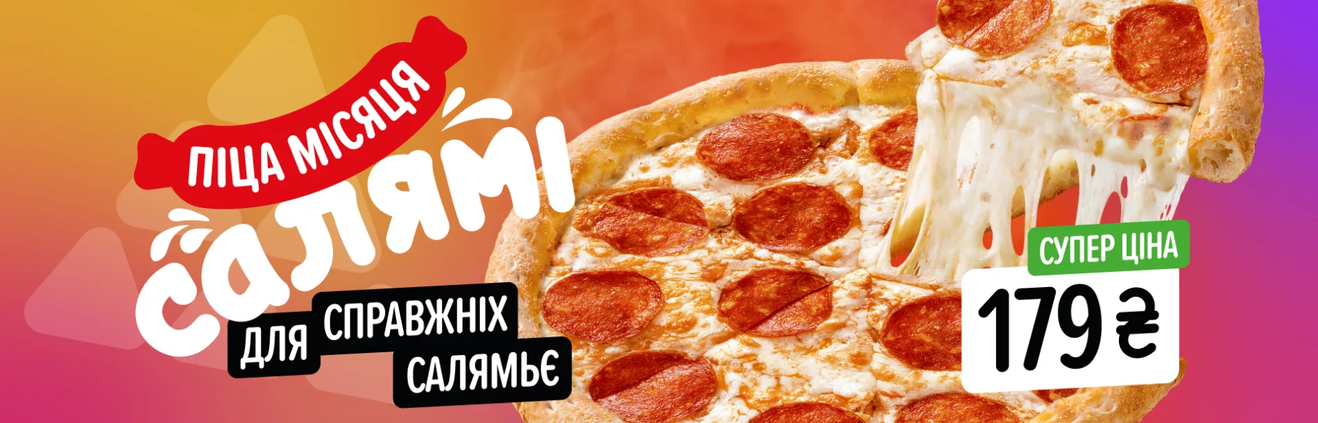 Піца місяця – Салямі 179 грн🍕 Знайомий смак та правильний баланс. Піца, яку замовляють, коли не хочеться експериментів.