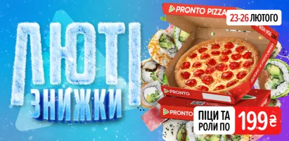Даруємо знижку 5% для учасників Пронто Клубу, -100 грн на перше замовлення у додатку, а також кожна третю піцу у вашому чеку. Наша доставка їжі пропонує не лише піцу, а й салати, десерти, напої та багато іншого. Ви можете обрати страви, які будуть до душі саме вам.