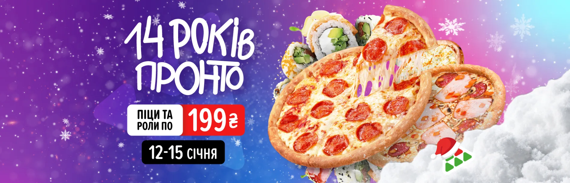 З 12 до 15 січня включно в усій мережі PRONTO роли та піци будуть по 199 грн🎉
